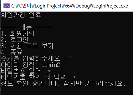 if (strcmp(password, "admin") == 0) { //displayMembers 비밀번호는 admin