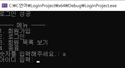 또한 기존 프로그램에서 회원가입과 로그인 시 회원 정보 확인 차 보여주기식으로 딜레이를 주었고, 깔끔한 화면을 유지하기 위해 system("cls");를 추가하였다.