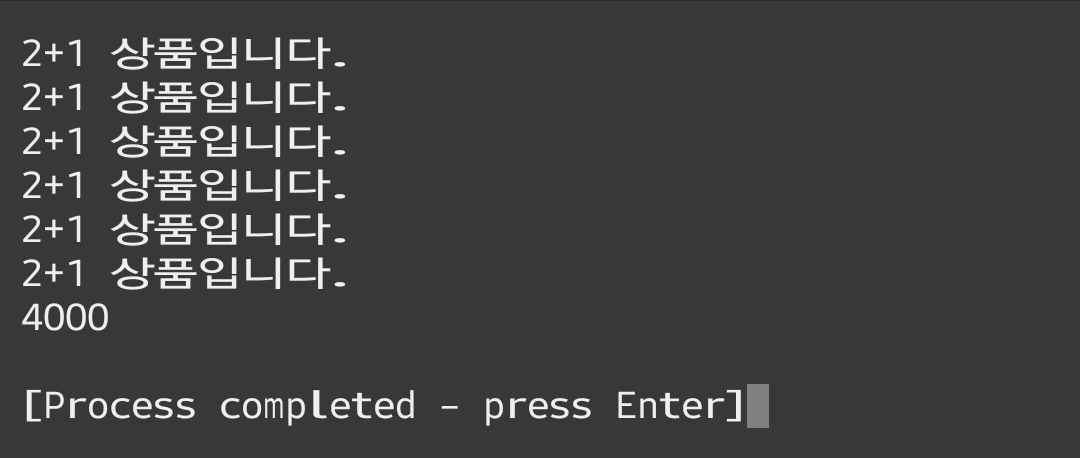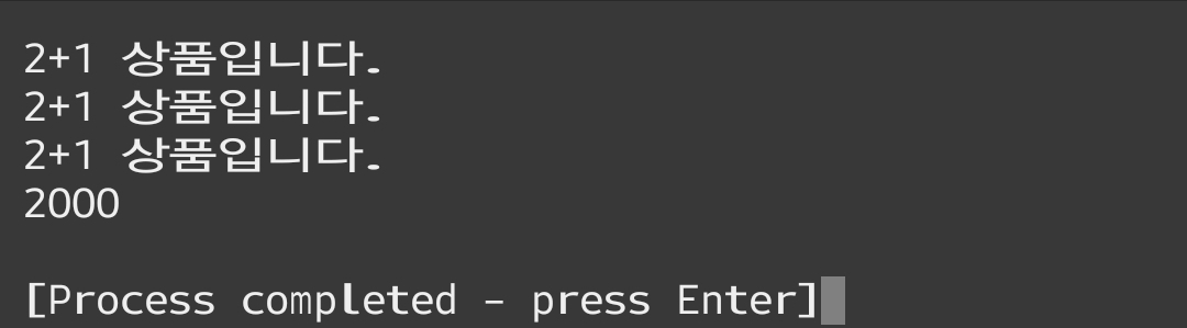 3. 계산 시 '2+1 상품입니다.' 출력.